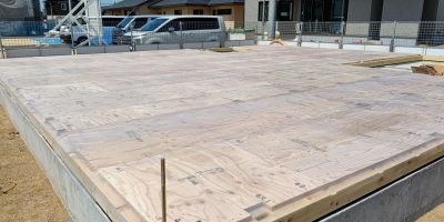 香川県高松市で夢工房新築工事 スタイロホーム 合板張り施工。
