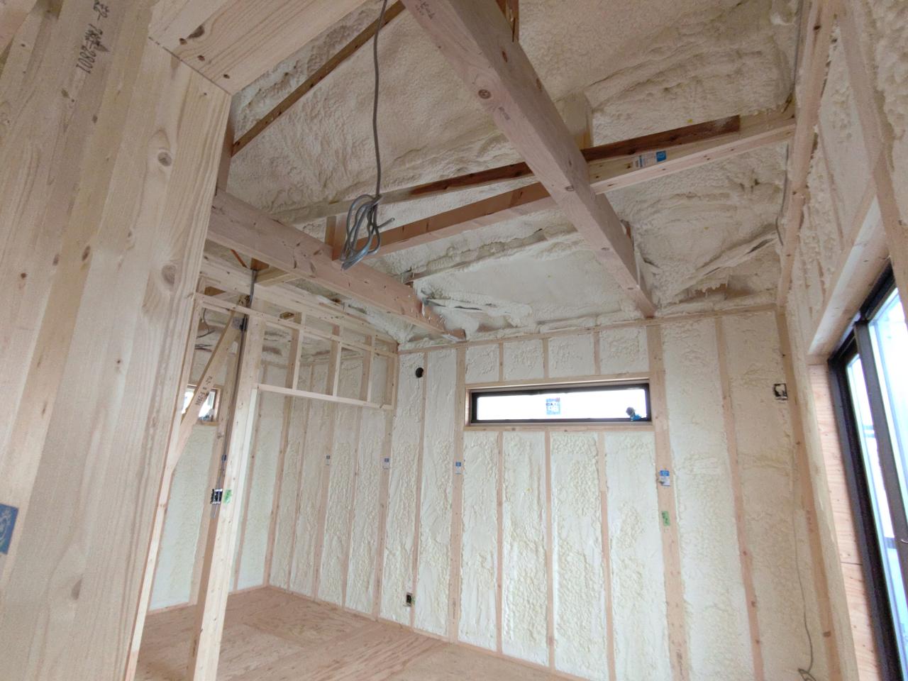 高松市で夢工房新築工事 ウレタン断熱吹き付け施工しました