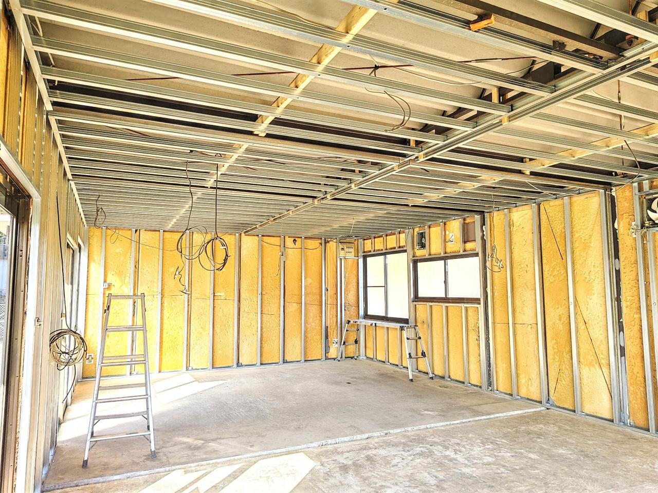 坂出市でプレハブ改装 軽天下地 ボード貼り施工しました。