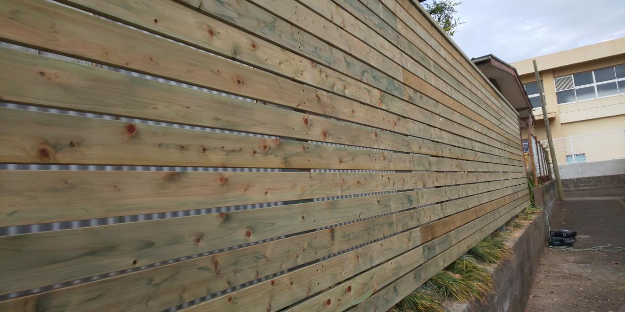 高松市で桧のウッドフェンス施工しました。