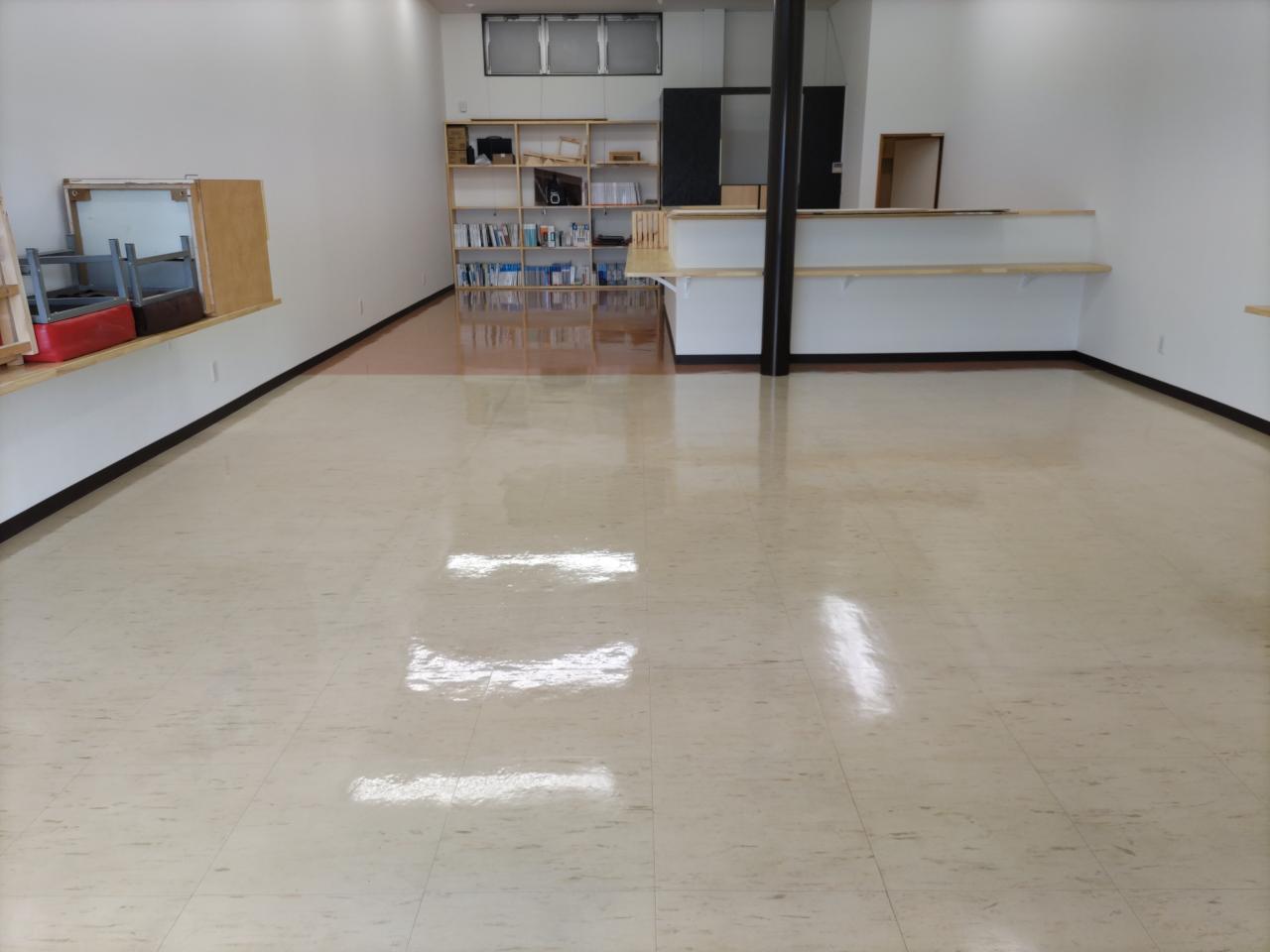 香川県高松市で店舗改装 床洗浄ワックス施工。