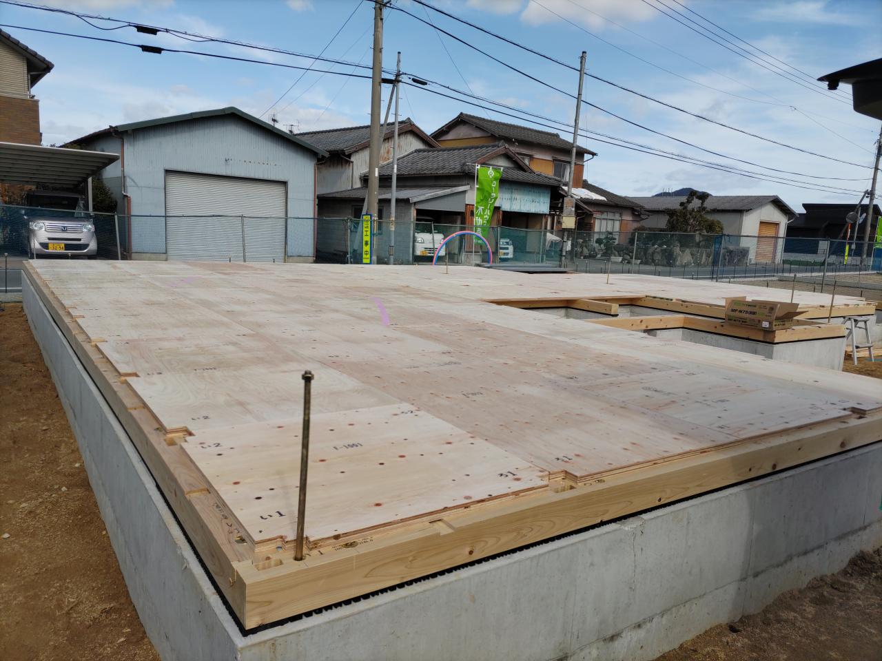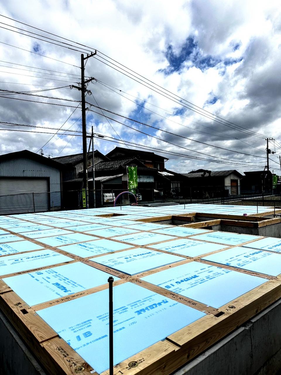 高松市で新築工事 スタイロ 合板張り施工しました。