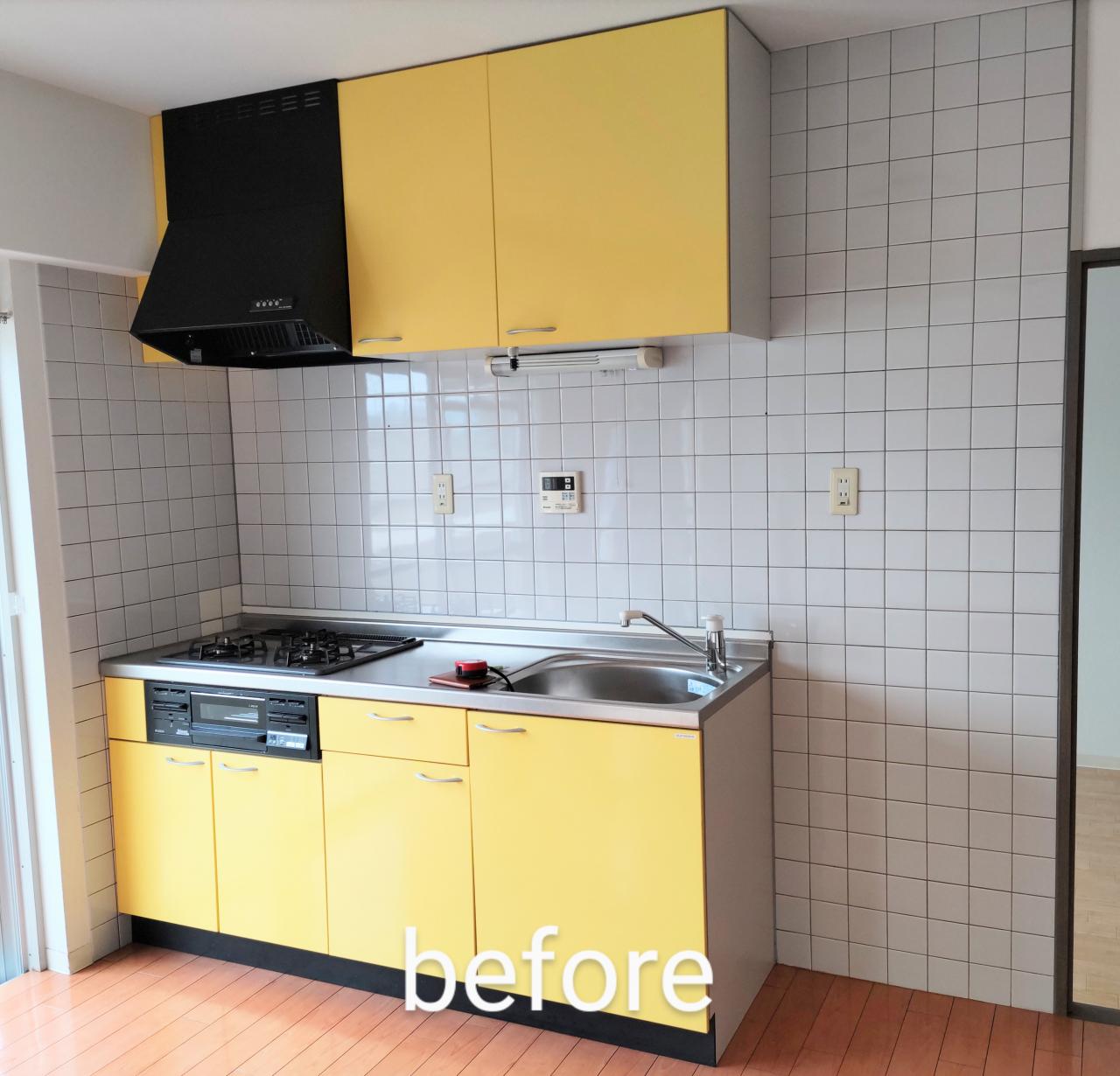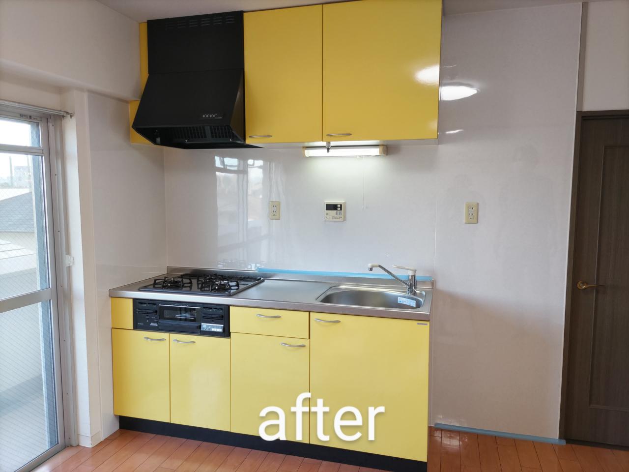 香川県高松市でタイルの上からキッチンパネル貼り施工。