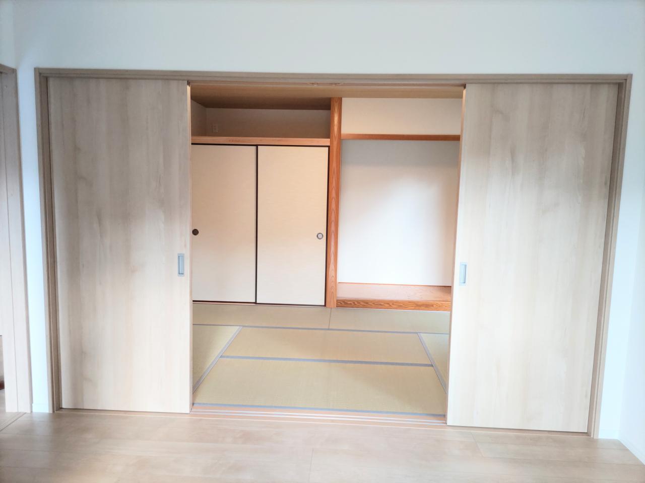 香川県高松市でキッチン棚付けクロス貼り替え工事施工。