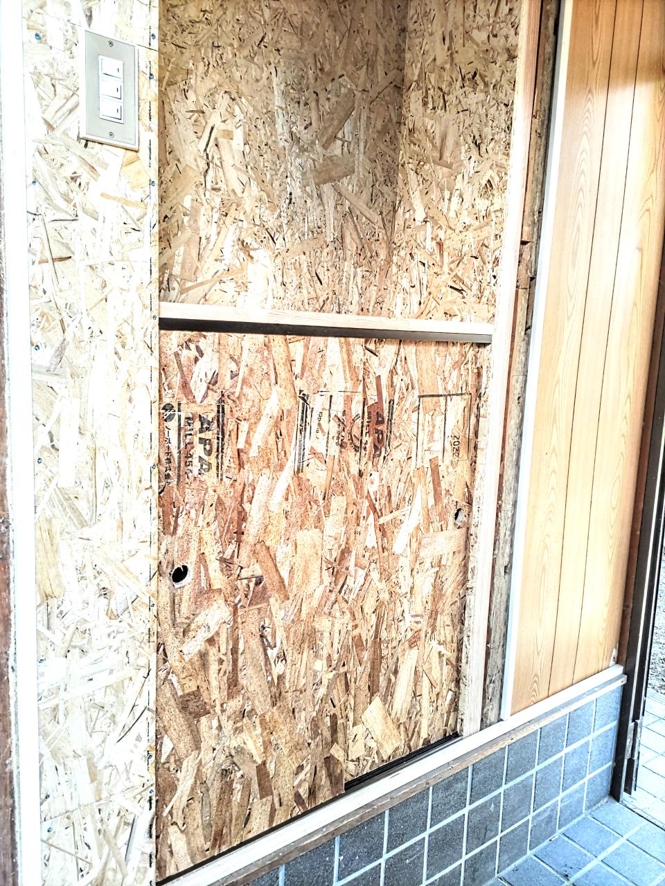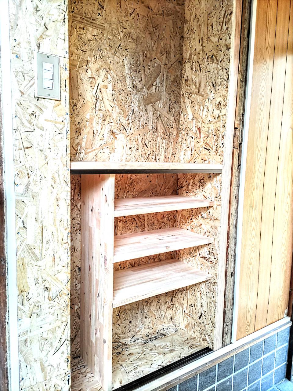 香川県高松市でOSB合板 集成材板で下駄箱作製。